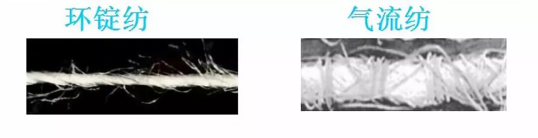 3 環(huán)錠紡與氣流紡的鑒別 環(huán)錠紡是在細(xì)紗機(jī)上紡制而得到,而紡紗的捻向都是Z捻,所以用S捻進(jìn)行退捻,纖維能分離。 氣流紡是通過(guò)氣流回旋形成渦流,因此紗線表面的纖維相互糾纏,而內(nèi)部的纖維有一定的捻度,但由于表面纖維相互糾纏,所以不管用z捻還是S捻解捻,都不能使纖維分離。 因此通過(guò)以上方法就能把二者區(qū)分開(kāi)來(lái),且同樣紗支的紗線,環(huán)錠紡的強(qiáng)力好于氣流紡,毛羽、條干氣流紡好于環(huán)錠紡。