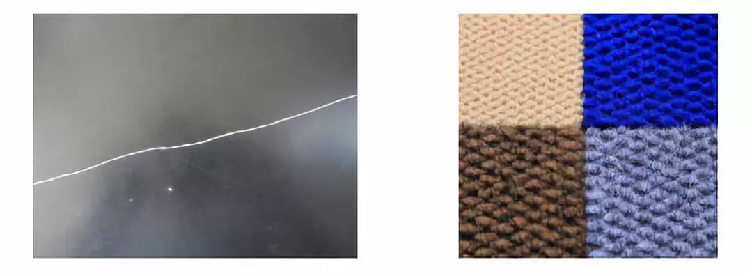 17 低彈絲與空變絲的鑒別 低彈絲(加捻的需解捻)吸要不用太大的力去拉,纖維始終呈現(xiàn)卷曲狀態(tài)。而空變絲在變形加工過(guò)程中是纖維通過(guò)噴嘴內(nèi)氣流的渦流回旋產(chǎn)生的形變,從而使纖維與纖維之間發(fā)生相互糾纏扭結(jié),因此你用力去拉,始終不能使糾纏的纖維相互分離。利用這一點(diǎn)我們就可以來(lái)區(qū)分這二種絲線。 18 樂(lè)麗絲與舞龍絲的鑒別 因?yàn)椴济娑加兄窆?jié)效應(yīng),所以我們只要看絲線的網(wǎng)絡(luò)點(diǎn)是否均勻且有脫網(wǎng)段,如果網(wǎng)絡(luò)點(diǎn)是均勻的,又沒(méi)有脫網(wǎng)段,那這根絲肯定是樂(lè)麗絲;如網(wǎng)絡(luò)點(diǎn)不均勻,又有脫網(wǎng)段,那這根絲肯定是舞龍絲。 19 樂(lè)麗絲與白紋絲的鑒別 根據(jù)樂(lè)麗絲與白紋絲的絲線制作原理,二種絲線中均存在白節(jié)、黑節(jié)、黑白節(jié),但樂(lè)麗絲絲線中黑節(jié)多于白節(jié),而白紋絲絲線中白節(jié)多于黑節(jié),所以只要看一下布面中黑白節(jié)的比例,就能區(qū)別二者了。 20 樂(lè)麗絲與彩麗絲的鑒別 樂(lè)麗絲是采用一根有不規(guī)則牽伸低彈型絲線與一根普通低彈型絲線通過(guò)網(wǎng)絡(luò)復(fù)合而成;而彩麗絲是采用一根有不規(guī)則牽伸低彈型絲線與一根陽(yáng)離子低彈型絲線通過(guò)網(wǎng)絡(luò)復(fù)合而成;因此區(qū)別兩者只要看絲線是否有兩個(gè)色相的顏色,線線中有兩個(gè)色相的是彩麗絲,只有一個(gè)色相的是樂(lè)麗絲。