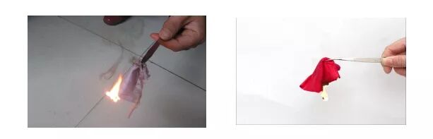 22 滌錦復(fù)合絲與海島絲的鑒別 滌錦復(fù)合絲是雙組份的,一般是75%是滌綸,25%是錦綸,因此在燃燒時(shí)有臭氣。海島絲它必須與高收縮滌綸牽伸絲組織,方能發(fā)揮海島絲的效果,因此整根絲線象正弦曲線一樣的外觀,盤(pán)旋在外面的是海島絲,中心位置的是高收縮絲。 23 滌綸、錦綸、腈綸的鑒別 1、滌綸不論是陽(yáng)離子改性滌綸,也不管是牽伸絲和低彈絲,在燃燒時(shí)的火焰顏色為淡紅色,有芳香氣味。 2、錦綸不論是牽伸絲和低彈絲,燃燒時(shí)有臭味,白色或淺色錦綸燃燒時(shí)的火焰顏色為淡蘭色,而黑色或深色錦綸燃燒時(shí)的火焰顏色為淡黃色。 3、腈綸不論是牽伸絲和低彈絲,燃燒時(shí)有臭味,在燃燒時(shí)的火焰顏色為淡紅色。 利用這一點(diǎn)就可以來(lái)鑒別這三種纖維。