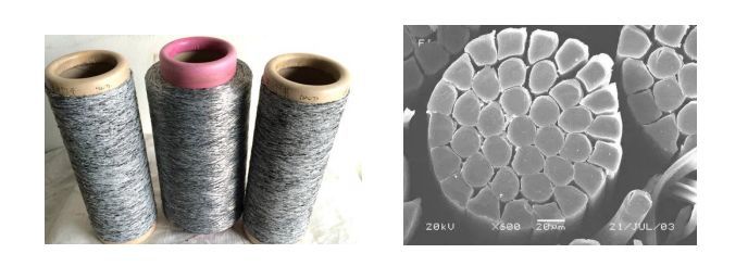 27 滌綸復(fù)合絲與牽伸絲的鑒別 如果是原絲則只要看是否有網(wǎng)點(diǎn),而且復(fù)合絲有兩根絲線,用力拉先是FDY被拉直,然后被拉斷,緊接著是POY被拉長(zhǎng),最終被拉斷;如果是倍捻絲線,則需將它們退捻,接著用力拉伸絲線,如果是復(fù)合絲則先是FDY被拉直,然后被拉斷,緊接著是POY被拉長(zhǎng),最終被拉斷;如果是牽伸絲,則稍一用力拉,絲線被拉直,再繼續(xù)用力,絲線最終被拉斷。